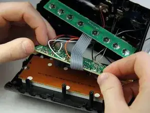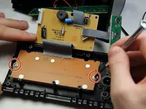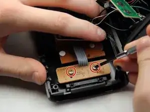 Удалите два винта Phillips #1 7 мм, удерживающие кнопки.