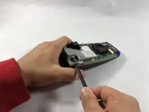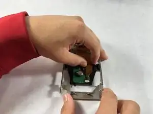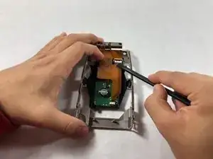 Отсоедините оставшиеся два оранжевых флипа от печатной платы, закреплённой на серой рамке.