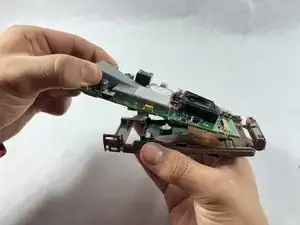Осторожно извлеките материнскую плату из серой пластиковой рамки.