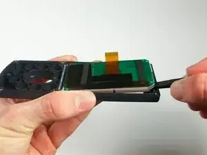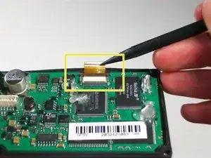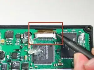 С помощью лопатки аккуратно выньте ленточный кабель из разъёма до полного освобождения.