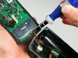 Крестовой отвёрткой #1 отверните серебряный винт M2x0.4 на плате рядом с коричневым проводом.