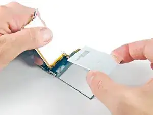 Панель дисплея iPod Nano приклеена к рамке клеем. В следующих шагах работайте медленно и аккуратно, чтобы не повредить устройство.