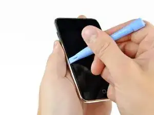 Вставьте пластиковый инструмент для открытия между передней панелью и пластиковым окружением и подденьте в нескольких местах вдоль левого края Touch.