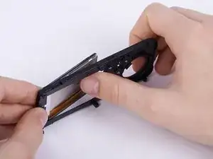 Разблокируйте соединение между дисплеем и материнской платой, отодвинув коричневую защелку.