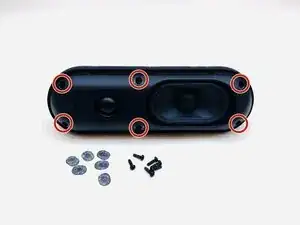 Отверткой Phillips #1 выкрутите шесть винтов длиной 14,3 мм, которые фиксируют узел динамика и корпус колонки вместе.