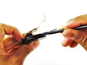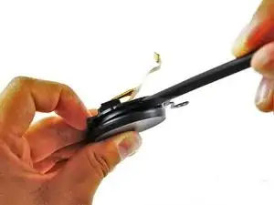 Подденьте заднюю панель, поворачивая лопатку по часовой стрелке, чтобы открыть заднюю крышку и получить доступ к дочерней плате внутри трекпада.