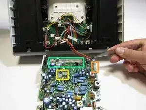 Отключите восемь проводов, прикрепленных к печатной плате, с помощью пинцета. Если провода слишком натянуты, лучше использовать плоскогубцы.