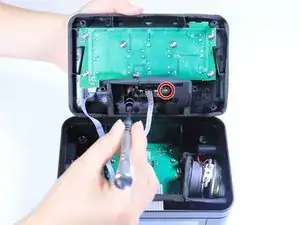 Используя крестовую отвёртку №1, выкрутите два 7-мм винта крестообразного типа, которые крепят док-станцию iPhone к верхней крышке часов.