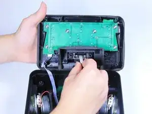 Удерживайте белый разъём ленточного кабеля, который соединяет кабель Lightning с центром центральной печатной платы, расположенной в нижней части часов. Сожмите и потяните прямо вверх, чтобы отсоединить кабель.
