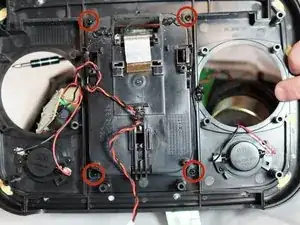 Док-станция iPod — это часть динамика, к которой подключается iPod. Замена док-станции требует извлечения батарей, кнопок регулировки громкости и питания, а также материнской платы. Требуются навыки пайки; для дополнительной помощи ознакомьтесь с этим руководством по пайке.