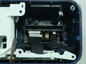 После снятия внешнего синего корпуса по углам откроются четыре винта T-8 (длина 15 мм). Удалив эти винты, просто потяните верхнюю часть корпуса динамика от основания, чтобы получить доступ к внутренней части колонки.