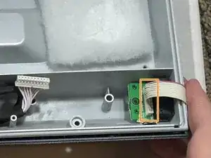 Используйте инструмент iFixit для вскрытия, чтобы подтянуть обе стороны панели динамика. Они должны легко отойти. Потяните за центр крепко, чтобы разорвать клей.