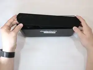 ИЛИ возьмитесь за серебристую вкладку, чтобы вытянуть переднюю часть динамика. Это может потребовать усилий.