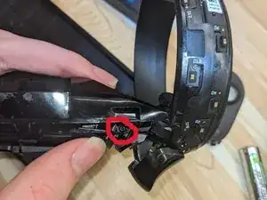 На левом контроллере пластмассовое продолжение возле курка затрудняет снятие кожуха. Мне пришлось срезать часть этого продолжения и тянуть очень сильно, в результате частично повредив резиновый демпфер внутри курка, который уменьшает звук курка.