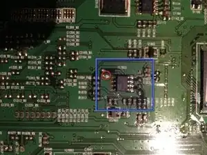 Переверните основную плату, чтобы открыть сторону, обращенную к шасси, и найдите IC1803 (интегральная схема 24C256).
