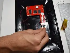 Отсоедините красный и чёрный кабели, соединяющие экран с материнской платой, просто вытянув их.
