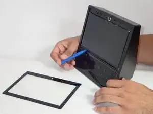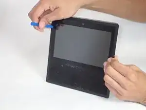 После того, как защита будет снята с экрана, используйте пластиковый инструмент для открытия, чтобы удалить сам экран с устройства, воспользовавшись отверстием в нижнем левом углу.