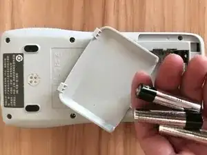 Сдвиньте крышку отсека для батареек и извлеките все элементы питания.