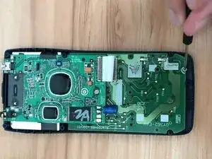 С помощью пинцета отсоедините кабель дисплея от платы.