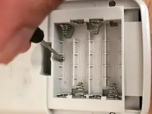 Осторожно выкрутите винт из отсека для батареек.