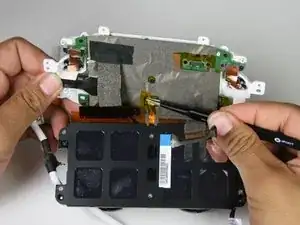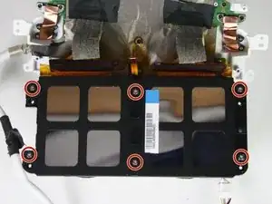 Удалите шесть винтов PH000 длиной 3,4 мм, вращая против часовой стрелки, которые соединяют заднюю панель с экраном.