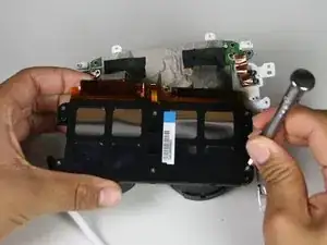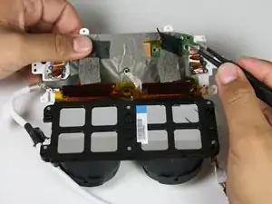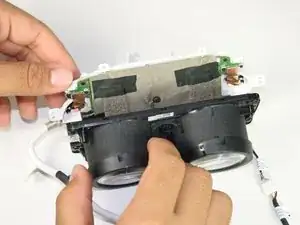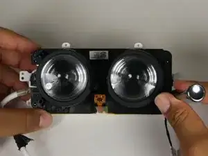 Осторожно извлеките блок линз и материнскую плату из белого корпуса.