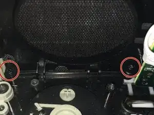 Для каждого динамика есть ещё по 2 винта. Динамики симметричны. Снимите 4 винта, чтобы освободить оба динамика.