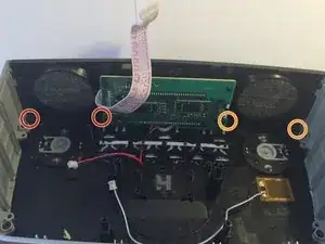 Снимите 4 винта с крестообразной головкой, крепящие динамики к корпусу.