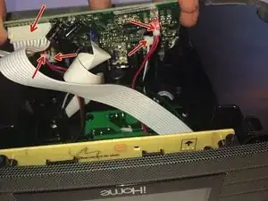 Отсоедините 4 двухпроводных разъёма и ленточный кабель, подключенные к блоку.