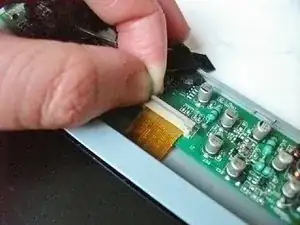 Удалите шлейф экрана, подняв соединительный зажим пальцами.