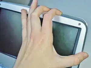 Аккуратно снимите экран руками, отдирая его от передней крышки.