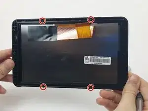 Используя отвёртку Torx T5, открутите четыре винта длиной 7 мм с задней пластины экрана.