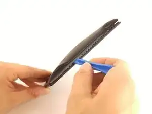 Твердо вставьте пластиковую лопатку в нижний шов и аккуратно подденьте участок. Используйте движение поддевания/толкания, чтобы вставить инструмент в устройство, пока не услышите щелчок.