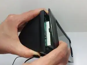 Переверните будильник и извлеките винт длиной 1 см с крестообразной головкой, расположенный под лицевой панелью в нижней части корпуса.