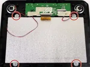 Откроется вид на печатную плату, задние части динамиков и заднюю часть экрана.