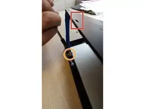 Вставьте пластиковый инструмент для открытия в прямоугольные отверстия и приподнимите, чтобы получить доступ к внутренней части корпуса экрана.