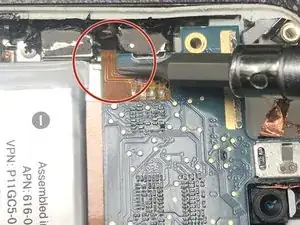 Поднимите его, как указано, и отсоедините разъем; он будет напоминать деталь LEGO. Нажмите пластиковым инструментом, чтобы его отсоединить.