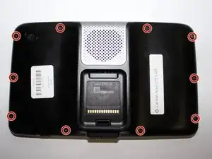 Используя отвёртку T-6 Torx, выкрутите десять винтов Torx T-6 длиной 2,38 мм с задней панели GPS.