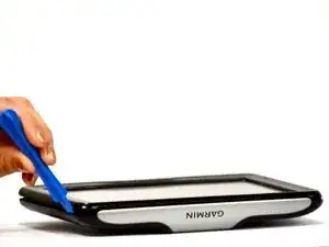 Используя самый большой пластиковый инструмент для вскрытия, аккуратно раскройте корпус GPS по боковым сторонам. Теперь вы сможете увидеть всё внутреннее устройство GPS.