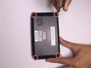 Держите устройство на месте, удалите все четыре винта по 5 мм с задней панели устройства с помощью отвертки Philips #000.