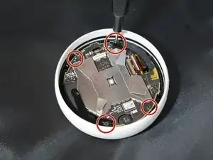 Два меньших винта находятся вокруг штыревого разъёма, а два больших — у внешнего ободка.