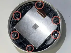 Удалите два шурупа для гипсокартона длиной 1 ¼” (32 мм), удерживающих основание с дисплеем и монтажную пластину в стене, при помощи крестовой отвертки Philips #2.