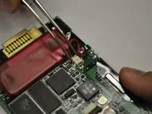 Используя пинцет, сожмите разъём, прикреплённый к проводу, и аккуратно потяните.