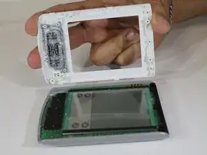 Переверните устройство экраном вверх. Аккуратно оттяните верхнюю и нижнюю крышки от устройства, как показано на второй фотографии.