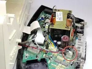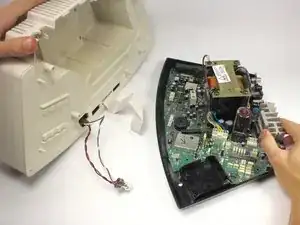 Аккуратно сожмите и потяните за белый шлейф, чтобы отключить его от основания.