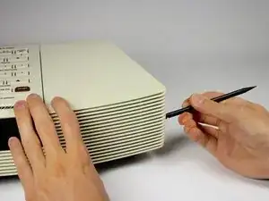 Вставьте лопатку между верхней и передней панелью с правой стороны устройства.