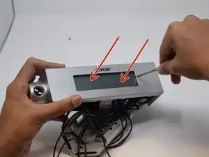 Используя отвертку Phillips #0, выкрутите три винта, крепящие заднюю панель к устройству.