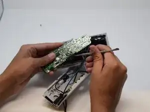 Выкрутите два винта, соединяющие плату мотора с устройством.