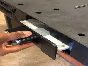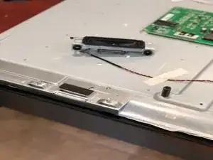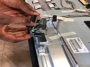 В нижней части телевизора закреплены две металлические пластины. Именно нижняя часть телевизора мешает доступу к стеклянной панели.