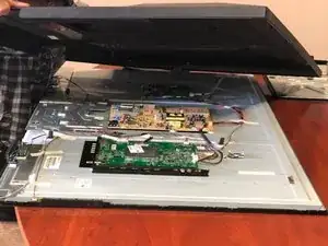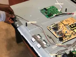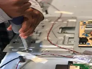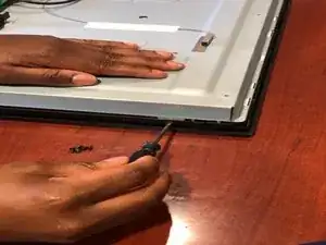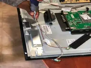 Когда снимете все винты, ещё раз проверьте, не остался ли какой-то, чтобы мы могли быстро перевернуть телевизор и закончить. :)